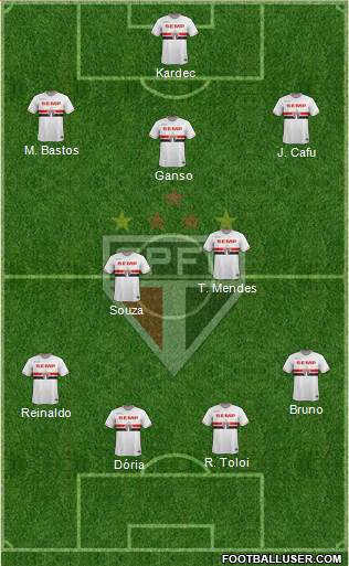 Dória · R. Toloi · Reinaldo · Bruno · Souza · T. Mendes · Ganso · J. Cafu · M. Bastos · Kardec