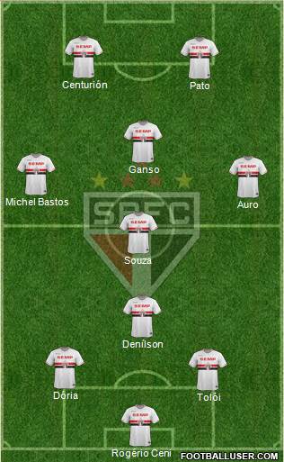 Rogério Ceni · Tolói · Dória · Denílson · Souza · Auro · Michel Bastos · Ganso · Pato · Centurión