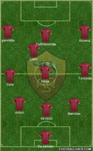 De sanctis · de rossi · Manolas · Astori · Cole · Ninja · Torosidis · Ljajic · Totti/doumbia · florenzi · gervinho