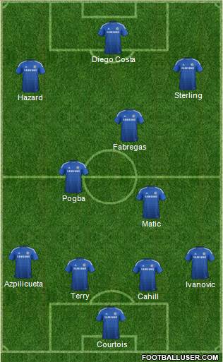 Courtois · Cahill · Terry · Ivanovic · Azpilicueta · Matic · Pogba · Fabregas · Hazard · Sterling · Diego Costa