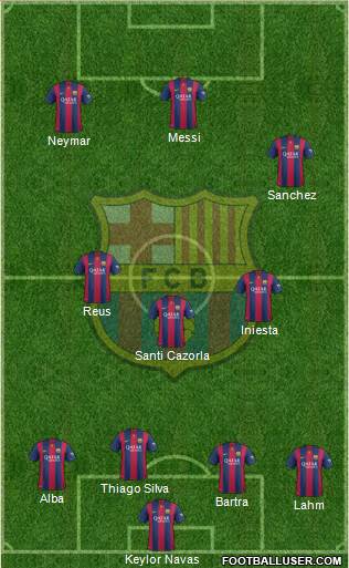 Keylor Navas · Lahm · Bartra · Alba · Thiago Silva · Santi Cazorla · Iniesta · Reus · Sanchez · Neymar · Messi
