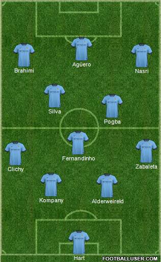 Hart · Alderweireld · Kompany · Clichy · Zabaleta · Fernandinho · Pogba · Silva · Nasri · Brahimi · Agüero