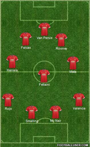 Smalling · Mc Nair · Rojo · Valencia · Fellaini · Mata · Herrera · Rooney · Falcao · Van Persie