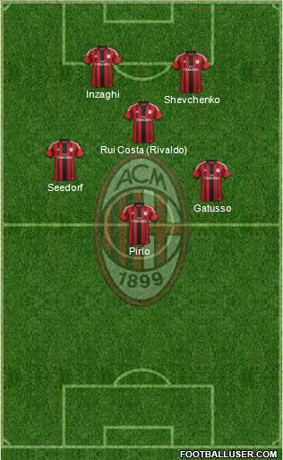 Inzaghi · Shevchenko · Rui Costa (Rivaldo) · Seedorf · Gatusso · Pirlo