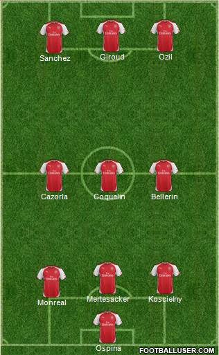 Ospina · Monreal · Mertesacker · Koscielny · Cazorla · Coquelin · Bellerin · Sanchez · Giroud · Ozil