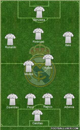 Casillas · Coentrao · Pepe · Arbeloa · Ramos · Modric · Kroos · Ronaldo · Bale · Rodrigez · Benzema