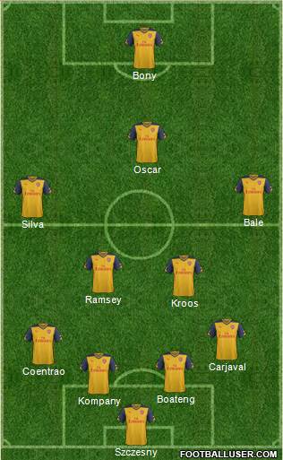 Szczesny · Kompany · Boateng · Coentrao · Carjaval · Kroos · Ramsey · Silva · Bale · Oscar · Bony