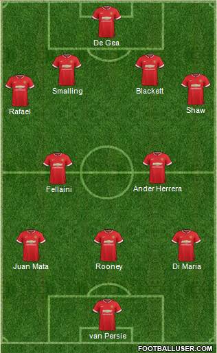 De Gea · Smalling · Blackett · Shaw · Rafael · Ander Herrera · Fellaini · Juan Mata · Rooney · Di Maria · van Persie