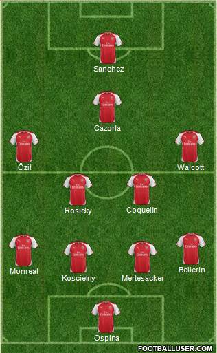 Ospina · Koscielny · Mertesacker · Monreal · Bellerin · Rosicky · Coquelin · Özil · Walcott · Cazorla · Sanchez