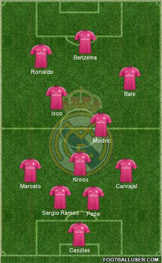 Casillas · Pepe · Sergio Ramos · Marcelo · Carvajal · Kroos · Modric · Isco · Bale · Ronaldo · Benzema