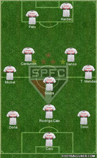 Ceni · Doria · Toloi · Rodrigo Caio · Souza · Michel · T. Mendes · Ganso · Centurion · Pato · Kardec