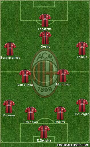 E.Berisha · Emre Can · Méxes · Kurzawa · De Sciglio · Van Ginkel · Montolivo · Bonnaventura · Lamela · Destro · Lacazette