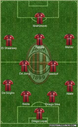 Diego Lopez · Thiago Silva · Nesta · Abate · De Sciglio · Seedorf · De Jong · El Shaarawy · Honda · Menez · Ibrahimovic