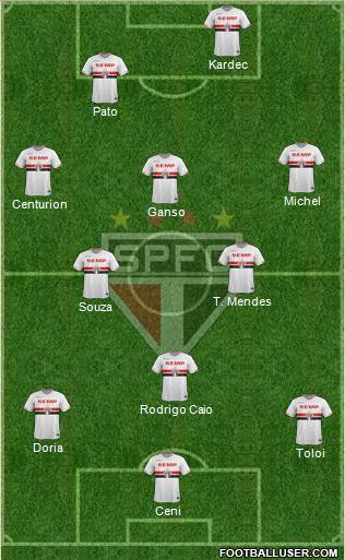 Ceni · Toloi · Doria · Rodrigo Caio · Souza · T. Mendes · Ganso · Centurion · Michel · Pato · Kardec