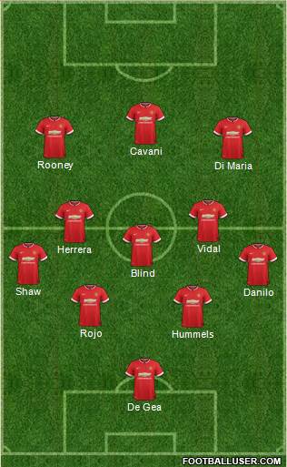 De Gea · Hummels · Rojo · Danilo · Shaw · Blind · Herrera · Vidal · Di Maria · Rooney · Cavani