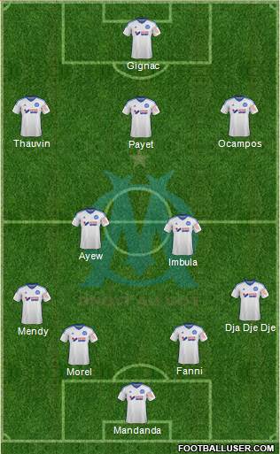 Mandanda · Morel · Fanni · Mendy · Dja Dje Dje · Imbula · Ayew · Payet · Thauvin · Ocampos · Gignac
