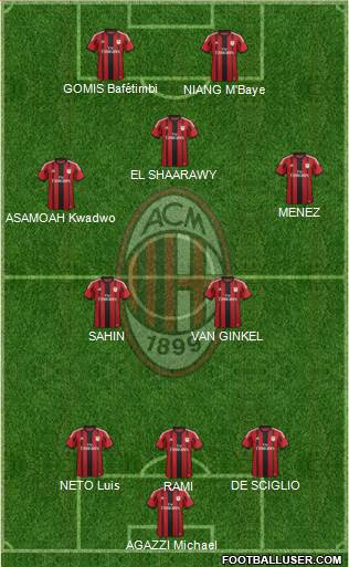 AGAZZI Michael · RAMI · NETO Luis · DE SCIGLIO · SAHIN · VAN GINKEL · ASAMOAH Kwadwo · MENEZ · EL SHAARAWY · NIANG M'Baye · GOMIS Bafétimbi