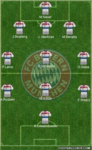 M.Neuer · J.Boateng · J. Martinez · M.Benatia · B.Schweini · P.Lahm · D.Alaba · M.Götze · A.Robben · F.Ribéry · R.Lewandowski