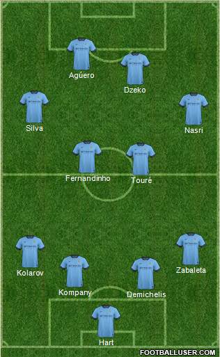Hart · Demichelis · Kompany · Kolarov · Zabaleta · Touré · Fernandinho · Nasri · Silva · Dzeko · Agúero