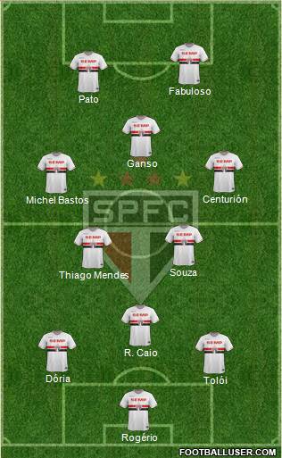 Rogério · Tolói · Dória · R. Caio · Thiago Mendes · Souza · Michel Bastos · Centurión · Ganso · Pato · Fabuloso