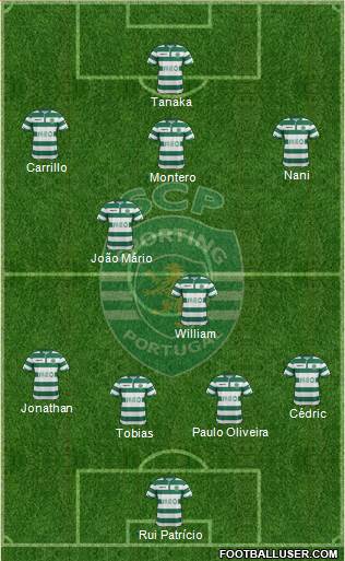 Rui Patrício · Tobias · Paulo Oliveira · Cédric · Jonathan · William · João Mário · Montero · Nani · Carrillo · Tanaka