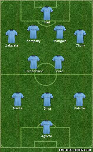 Hart · Kompany · Mangala · Zabaleta · Clichy · Fernandinho · Toure · Navas · Kolarov · Silva · Agüero