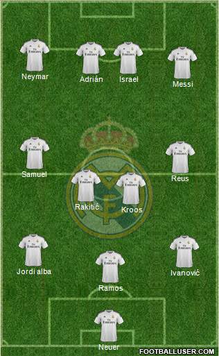 Neuer · Ramos · Ivanović · Jordi alba · Kroos · Rakitić · Reus · Samuel · Messi · Adrián · Israel · Neymar