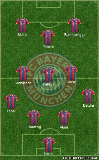 Neuer · Alaba · Boateng · Lahm · Deisler · Ballack · Klinsmann · Klose · Pizarro · Muller · Rummenigge