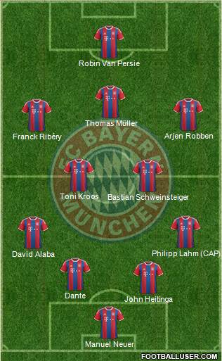 Manuel Neuer · John Heitinga · Dante · David Alaba · Philipp Lahm (CAP) · Bastian Schweinsteiger · Toni Kroos · Franck Ribéry · Arjen Robben · Thomas Müller · Robin Van Persie