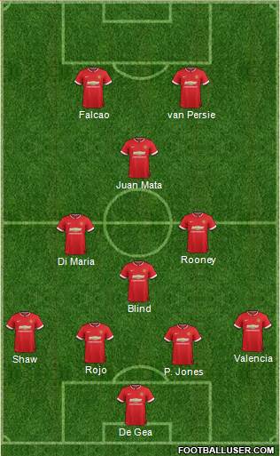 De Gea · P. Jones · Rojo · Shaw · Valencia · Blind · Di Maria · Rooney · Juan Mata · Falcao · van Persie