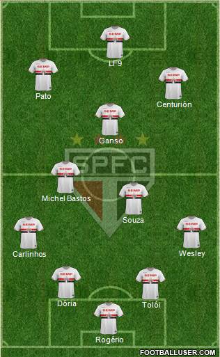 Rogério · Tolói · Dória · Carlinhos · Wesley · Souza · Michel Bastos · Ganso · Centurión · Pato · LF9