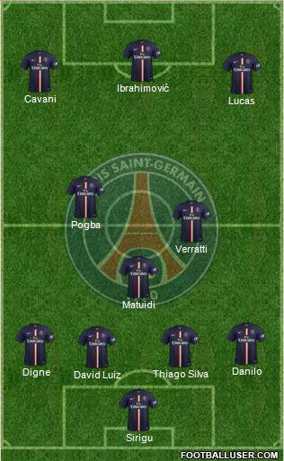 Sirigu · David Luiz · Thiago Silva · Digne · Danilo · Matuidi · Verratti · Pogba · Lucas · Cavani · Ibrahimović