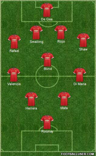 Rooney · Herrera · Mata · Valencia · Di Maria · Blind · Rafael · Shaw · Smalling · Rojo · De Gea