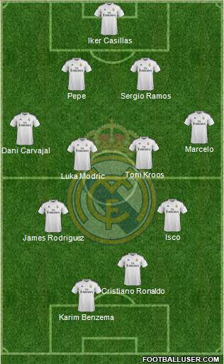 Iker Casillas · Pepe · Sergio Ramos · Marcelo · Dani Carvajal · Toni Kroos · Luka Modric · Isco · James Rodriguez · Cristiano Ronaldo · Karim Benzema