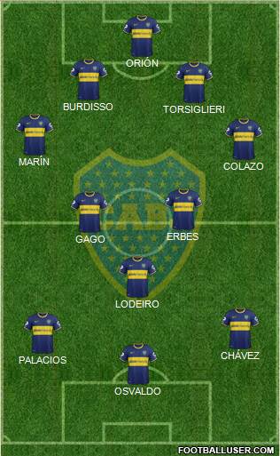 ORIÓN · BURDISSO · TORSIGLIERI · MARÍN · COLAZO · ERBES · GAGO · LODEIRO · CHÁVEZ · PALACIOS · OSVALDO