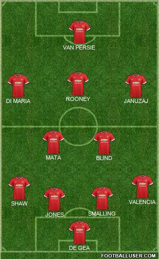DE GEA · JONES · SMALLING · SHAW · VALENCIA · BLIND · MATA · DI MARIA · JANUZAJ · ROONEY · VAN PERSIE
