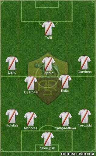 Skorupski · Manolas · Yanga-Mbiwa · Holebas · Torosidis · De Rossi · Keita · Pjanic · Ljajic · Gervinho · Totti