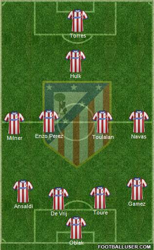 Oblak · De Vrij · Toure · Ansaldi · Gamez · Milner · Toulalan · Navas · Enzo Perez · Hulk · Torres