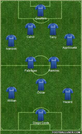 Courtois · Cahill · Terry · Azpilicueta · Ivanovic · Fabregas · Ramires · Óscar · Willian · Hazard · Diego Costa