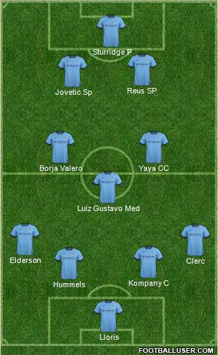 Lloris · Hummels · Kompany C · Clerc · Elderson · Luiz Gustavo Med · Borja Valero · Yaya CC · Jovetic Sp · Reus SP · Sturridge P