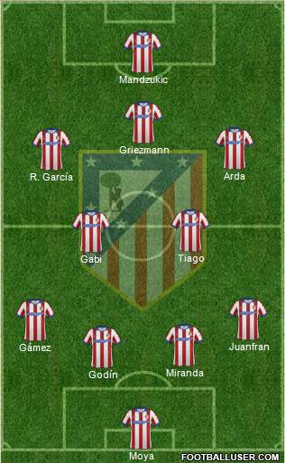 Moya · Godín · Miranda · Gámez · Juanfran · Gabi · Tiago · R. García · Arda · Griezmann · Mandzukic