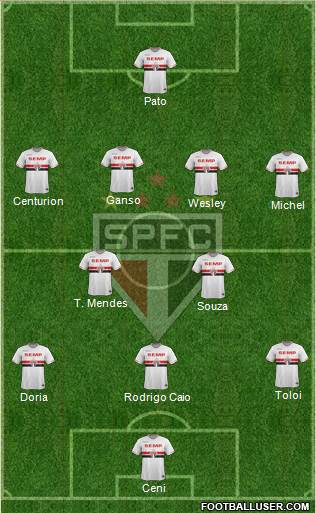 Ceni · Doria · Rodrigo Caio · Toloi · Souza · T. Mendes · Michel · Wesley · Centurion · Ganso · Pato