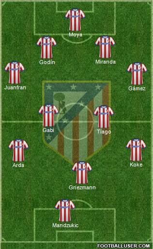 Moya · Miranda · Godín · Juanfran · Gámez · Gabi · Tiago · Koke · Arda · Griezmann · Mandzukic
