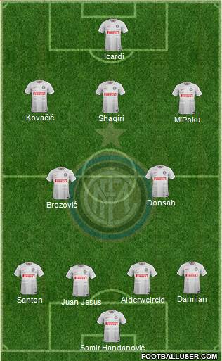 Samir Handanović · Juan Jesus · Santon · Alderweireld · Darmian · Brozović · Donsah · M'Poku · Shaqiri · Kovačić · Icardi