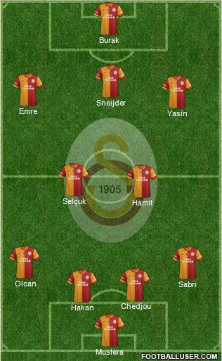 Muslera · Hakan · Chedjou · Sabri · Olcan · Hamit · Selçuk · Yasin · Emre · Sneijder · Burak