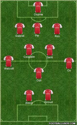 Alexis · Giroud · Ozil · Ox · Walcott · Santi · Coquelin · Kos · Gabriel · Per · Ospina