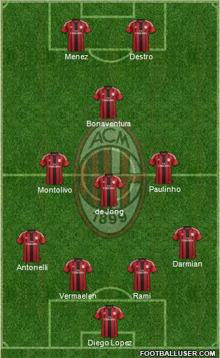 Diego Lopez · Vermaelen · Rami · Antonelli · Darmian · de Jong · Montolivo · Paulinho · Bonaventura · Menez · Destro