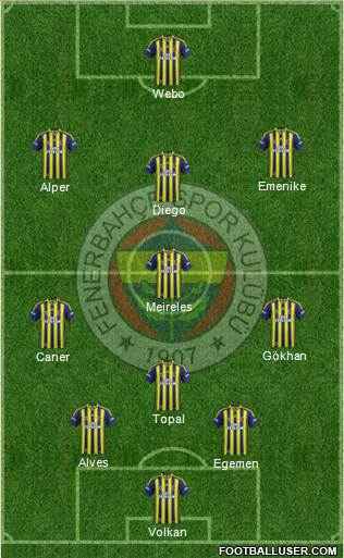Volkan · Egemen · Alves · Topal · Caner · Gökhan · Meireles · Diego · Alper · Emenike · Webo