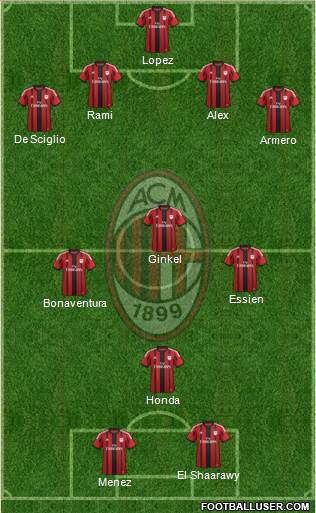 Menez · El Shaarawy · Honda · Bonaventura · Essien · Ginkel · Armero · De Sciglio · Rami · Alex · Lopez