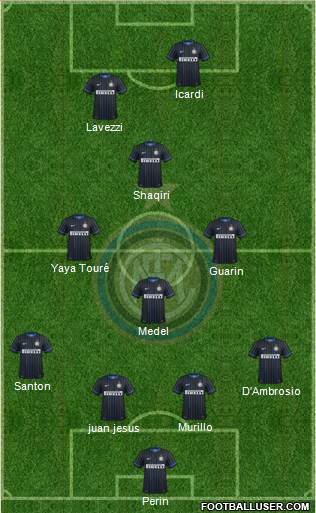 Perin · juan jesus · Murillo · D'Ambrosio · Santon · Medel · Guarin · Yaya Touré · Shaqiri · Lavezzi · Icardi